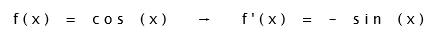 La función derivada de f es la que a cada elemento x le hace corresponder la derivada de la función f en dicho punto. Esta función se designa por f'(x).