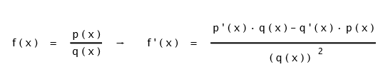 v2 La derivada de un cociente de funciones es igual al producto del denominador por la derivada del numerador, menos el producto del numerador por la derivada del denominador, todo dividido por el cuadrado del denominador